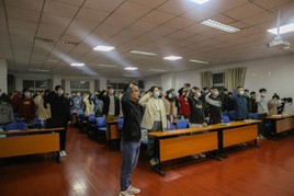 党课最后,赵斌带领全体学生党员重温入党誓词,庄严宣誓。