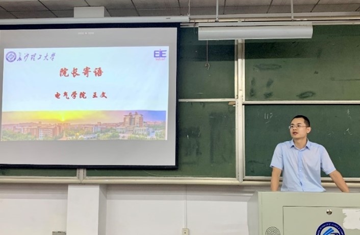 随后,王文致欢迎辞,他首先对新入学研究生表示祝贺,提到习近平总书记倡导的以新能源为主的电力系统,认为这是我们电气学院相关学科发展的时代机遇。王文还说到今年是学校十四五发展规划的开局之年,他结合实例给新生提出了实践出真知,沟通出火花,奋斗出奇迹三个锦囊,希望新生能够扎根中国大地做科研,与导师、同门、同行多途径沟通,保持终身学习的习惯。