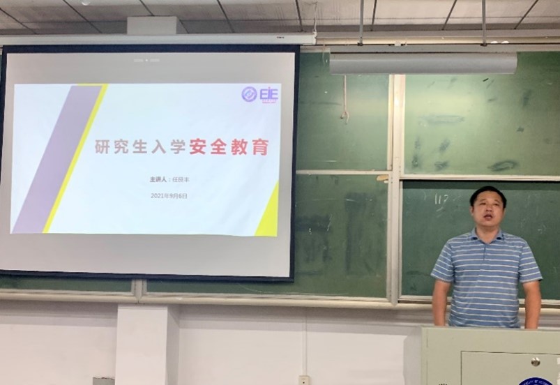 紧接着,任艮丰对研究生新生进行入学安全教育,他强调研究生要紧密联系导师,无论是生活还是科研学习都要及时向导师汇报。他结合实例生动、详细地阐述了人身安全、财产安全、消防安全、食品安全、网络安全、国家安全等方面安全的重要性和注意事项,特别强调了当前疫情形势下要遵守学校防疫政策,非必要不外出。