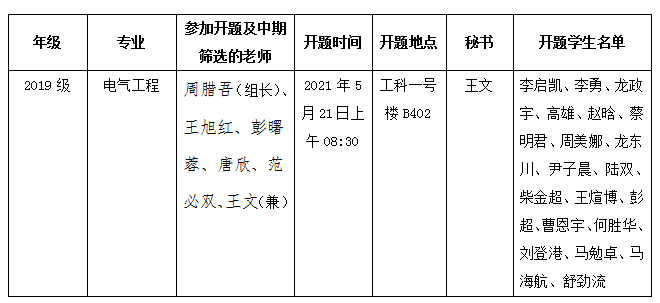 电气工程五组开题及中期筛选考核安排已公示,请大家提前填写好《437必赢会员中心研究生论文开题报告表》与《研究生中期筛选考核评定表》,做好答辩准备。