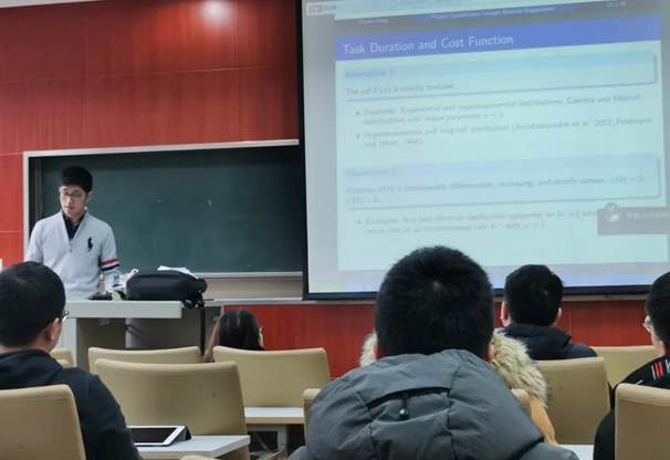 紧接着郑天虎教授从模型建立、模型推导等方面给我们介绍了讨价还价模型和一口价(Stackelberg)模型等模型,并提出了四个问题:1.在各种合同形式下,议价权结构如何影响合同效力?2.不同的网络拓扑对第一个问题的答案有何不同?3.付款时间、外部机会、和谈判协议等其他因素对承包商激励偏差的影响因素是什么?4.Stackelberg framework和Bargaining framework的结果有何不同?郑天虎教授从这四个问题出发,由浅入深给我们讲述了如何通过双边合同谈判协调项目外包。