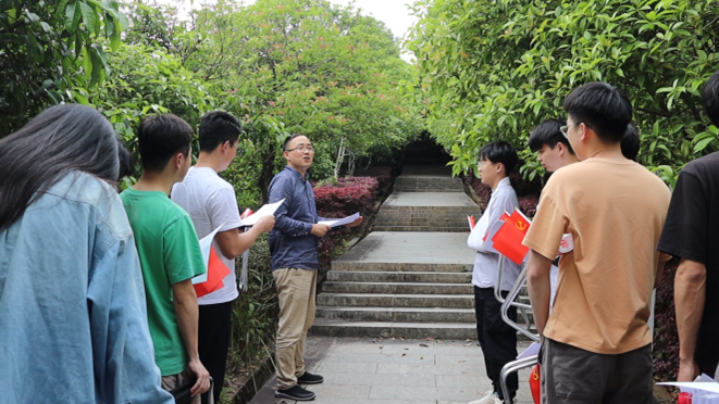 春日阳光正好,师生在云霞山脚下集合、领取物资后,开启了这次特别的“踏青”之旅,一边交流一边登上九云方鼎。