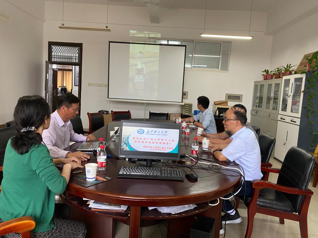 5月27日,广西大学电气学院院长双丰教授一行来我院调研交流,重点考察了我院“电力机器人”湖南省重点实验室建设情况。学院党委书记符慧林等领导班子成员与双丰一行进行了座谈。