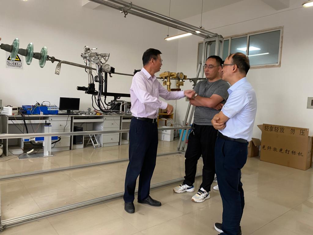 座谈会结束后,双丰一行参观了我院“电力机器人”湖南省重点实验室。实验室负责人樊绍胜教授做了全面介绍,并一一解答了客人们的相关问题。