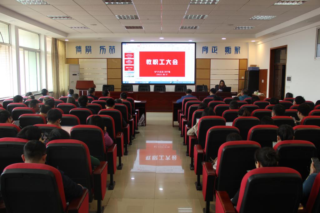 5月17日下午,学院在工一B503召开全院教职工大会。大会由院党委书记符慧林主持并讲话,其他院领导分别传达了学校有关会议精神,对相关工作的贯彻落实进行了全面部署。