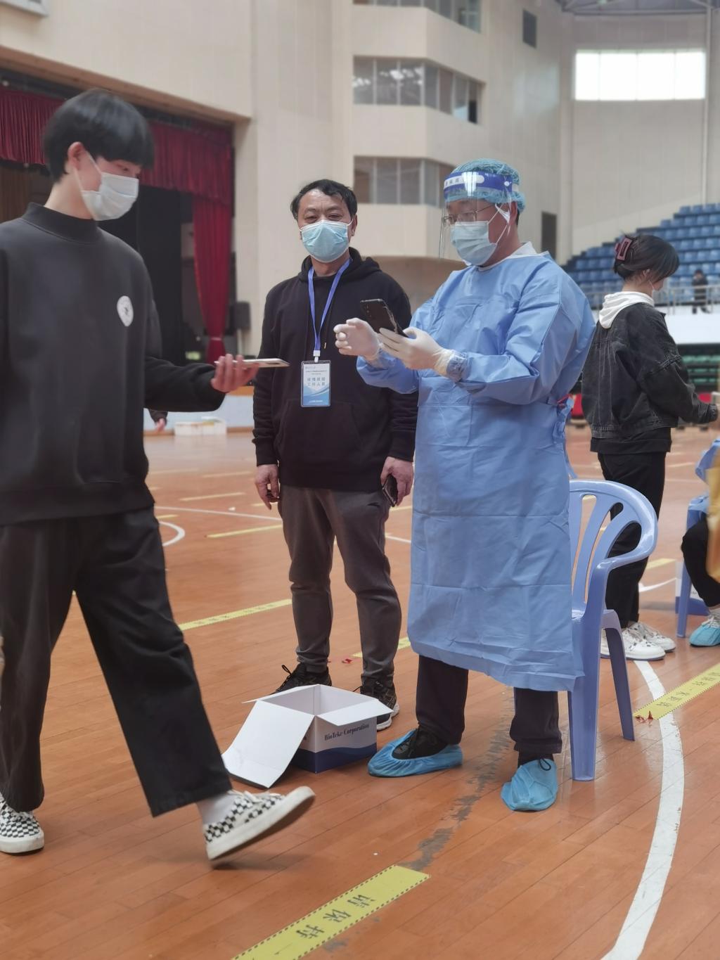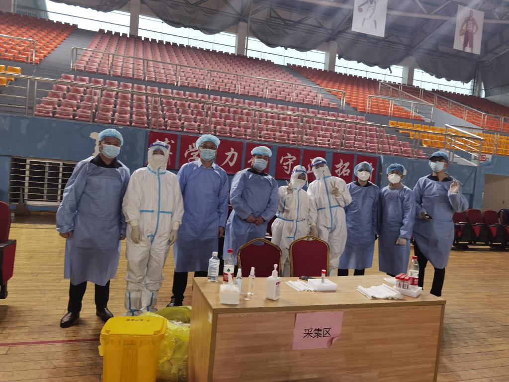 4月3日,22名教工党员参加了金盆岭校区10个核酸采集志愿服务工作,4小时完成5000多人的核酸采样。