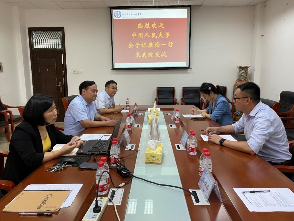 9月15日,中国人民大学应用经济学院院长助理安子栋一行来我院调研交流。