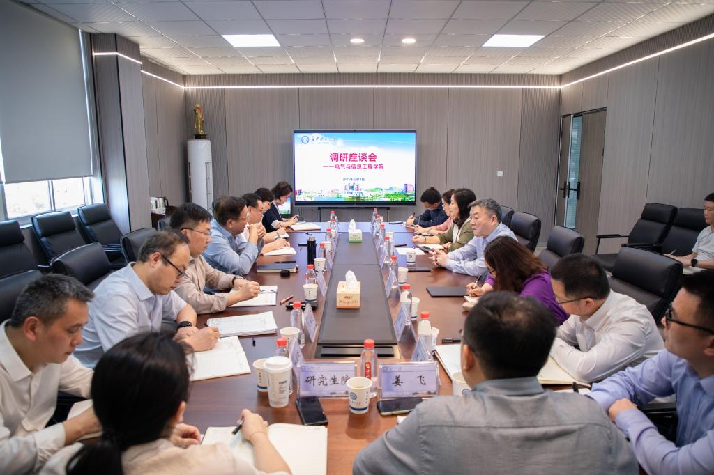 4月18日下午,校党委书记付宏渊带队来学院调研指导工作,校党委委员、副校长刘朝晖、张军辉,校党政办、人事处、教务处、科技处、研究生院等部门领导随行调研。学院领导班子全体成员参与座谈。