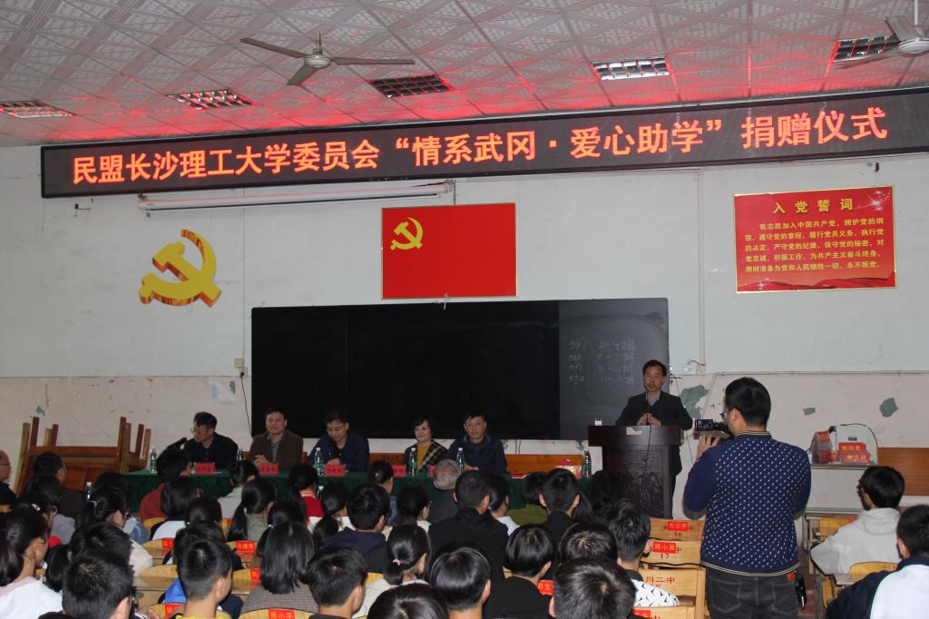 4月13日,民盟437必赢会员中心委员会到武冈二中开展“情系武冈 爱心助学”公益行动,受到武冈二中师生的热烈欢迎。