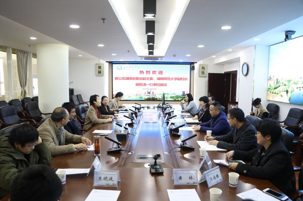 3月29日上午,致公党湖南省委会副主委、湖南师范大学副校长谢资清一行来必赢官网调研交流。副校长蒋璟萍、黄创霞出席调研座谈会。致公党湖南省委会组织处负责人、致公党437必赢会员中心支部全体党员参加了调研座谈会。