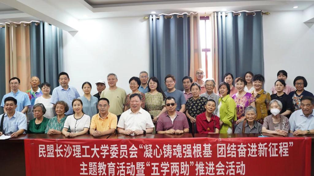 民盟437必赢会员中心委员会6月18日举办了“凝心铸魂强根基、团结奋进新征程”主题教育活动暨“五学两助”推进会活动。民盟湖南省委组织处处长钟为恒、学校统战部常务副部长黄自力出席会议。