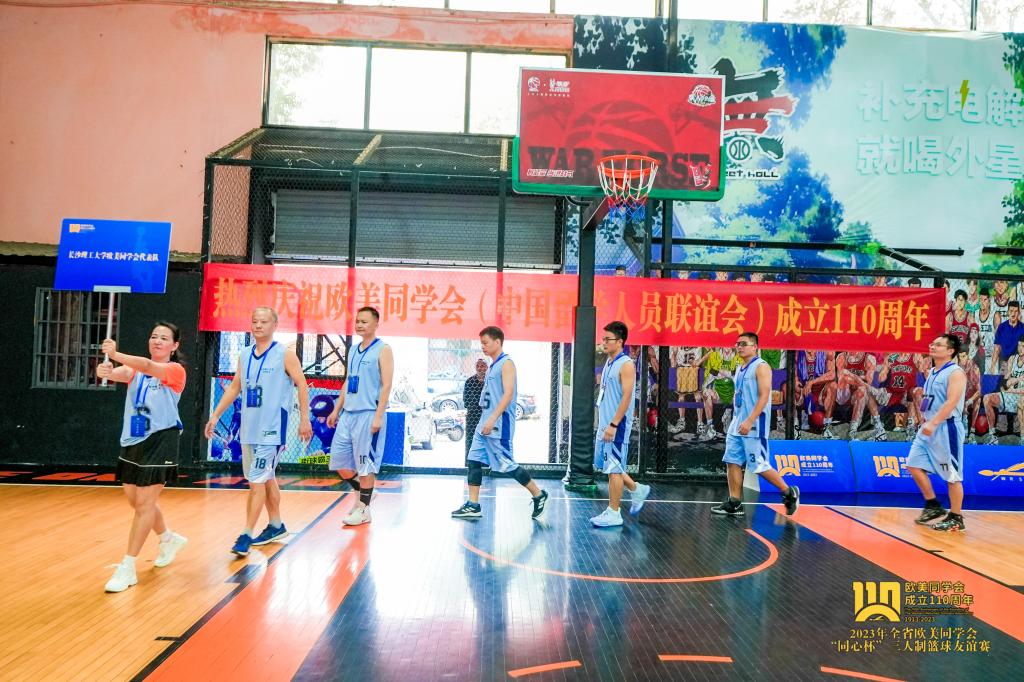 为庆祝欧美同学会成立110周年,9月23至24日,由湖南省欧美同学会主办的2023年全省欧美同学会“同心杯”三人制篮球友谊在长沙成功举行。省欧美同学会会长、省政协原副主席张大方宣布比赛开幕并为比赛开球。来自全省各市州、高校和国有企业的10支队伍参赛,437必赢会员中心欧美同学会同心篮球队作为高校代表队参加了此次比赛。