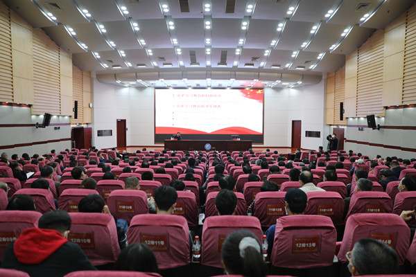学校全体在家校领导、副处级以上干部与师生代表300 余人听取了报告