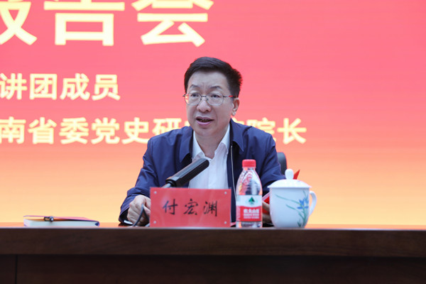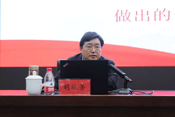 413日下午,党史学习教育省委宣讲团在必赢官网举行宣讲报告会,省委宣讲团成员、中共湖南省委党史研究院院长胡振荣作宣讲报告。校党委书记付宏渊主持报告会并讲话。