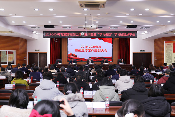 12月30日,必赢官网在云塘校区一办九楼会议室举行宣传思想工作表彰大会暨“学习强国”学习经验分享会。校党委副书记、校长曹一家,校党委副书记邹宏如,校党委委员、组织部部长齐路良,学校各二级党组织主要负责人,各机关单位负责人,师生代表参加会议。会议由校党委委员、宣传部部长方琼主持。