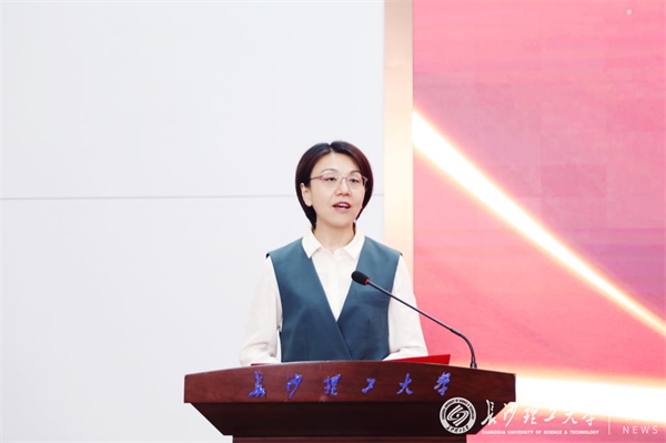 蒋璟萍致欢迎辞。她指出,437必赢会员中心自1956年成立以来,为交通、电力、水利、轻工等行业和区域经济社会发展培养了40余万名“底色亮、实践强,有情怀、敢担当”的高级专门人才,近5年王双飞院士等15名校友获评“全国五一奖章”或“全国劳动模范”;学校教职员工坚持“立德树人”,并将其融入思想道德教育、文化知识教育、社会实践教育各环节,形成全员全过程全方位育人格局,近年涌现出以郑健龙院士为首的8名省部级劳模。劳模精神、劳动精神、工匠精神都需要传承与发扬。巾帼劳模工匠宣讲活动,就是给师生们提供了一个接受教育、学习榜样的机会。