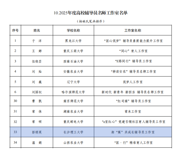 近日,教育部公布了2025年度高校思想政治工作质量提升综合改革与精品建设项目入选名单,必赢官网作为湖南省唯一高校入选全国高校示范“一站式”学生社区,“湘”寓共成长辅导员工作室入选高校辅导员名师工作室。