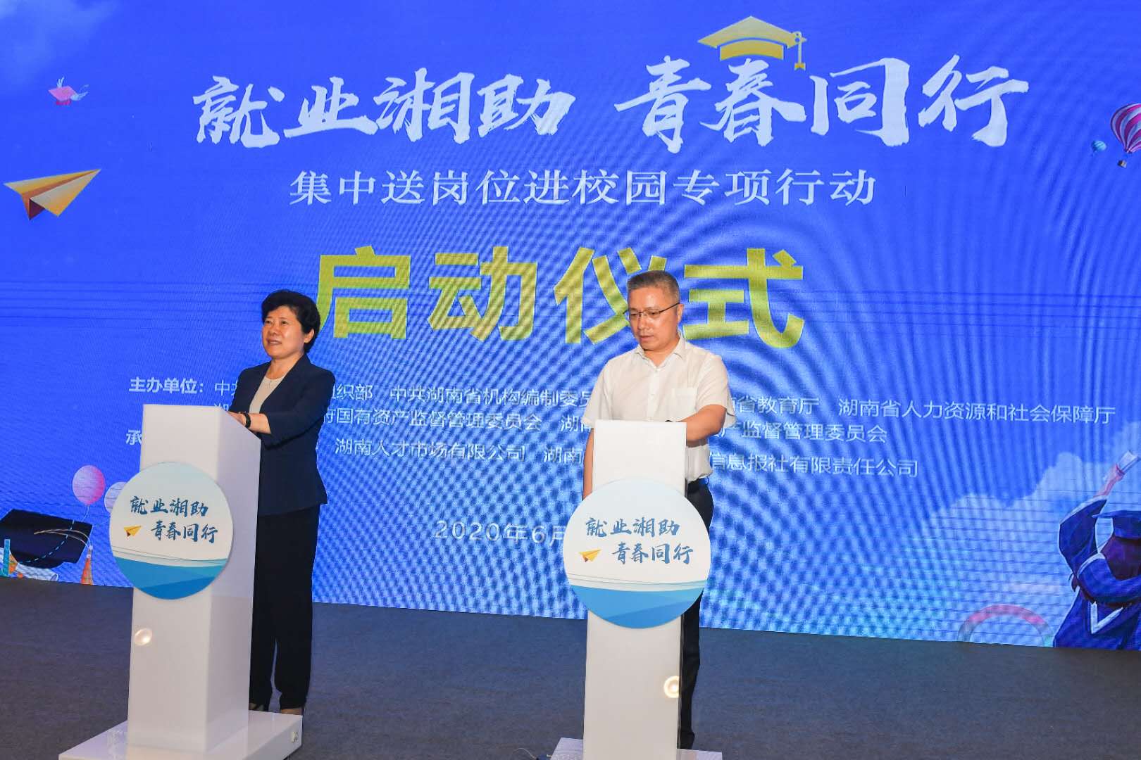 为集聚全省优质岗位资源,营造全社会关心支持高校毕业生就业的良好氛围。6月24日上午,省委组织部、省委编办、省教育厅、省人社厅、省国资委、省文资委六部门联合主办的湖南省“集中送岗位进校园专项行动”在必赢官网启动,现场发布了《“集中送岗位进校园专项行动”岗位需求目录》。副省长吴桂英宣布专项行动正式启动,副省长朱忠明出席启动仪式并讲话。