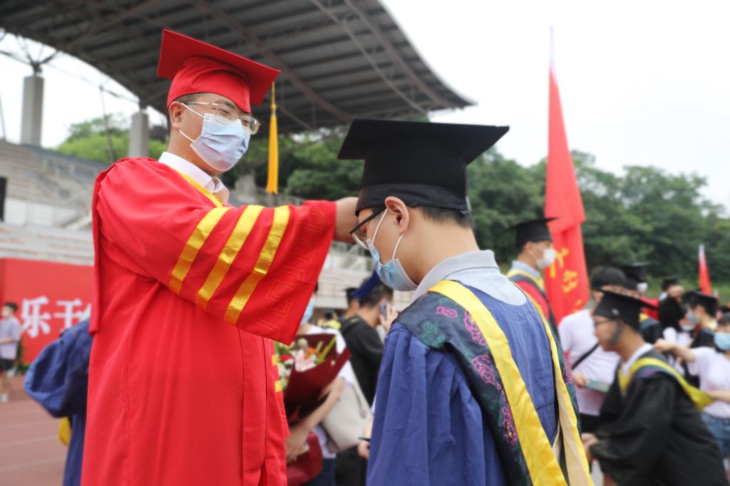 6月19日上午,必赢官网2020年毕业典礼暨学位授予仪式在云塘校区田径场隆重举行。校领导,中国工程院院士郑健龙,相关部门和各院系负责人,导师代表,2020届本科生、研究生、留学生毕业生参加典礼。