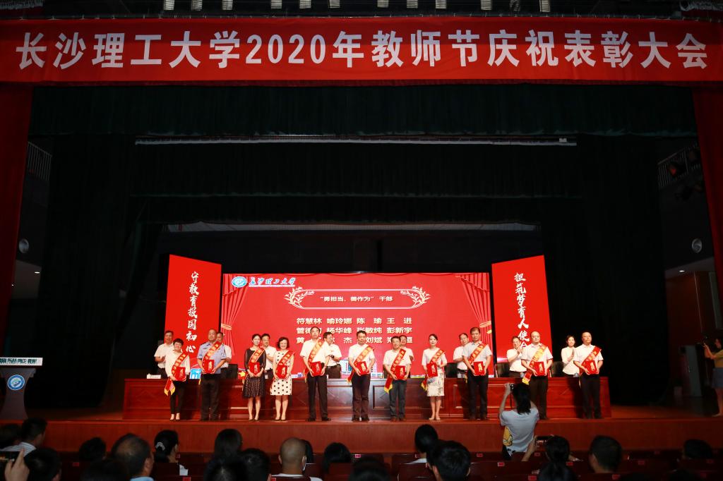 9月10日下午,必赢官网2020年教师节庆祝表彰大会在云塘校区大会堂举行。学校党政领导班子成员、教师、学生及离退休老同志代表500余人参加了大会。会上,校党委书记付宏渊作题为“牢记立德树人初心,致力为党育人为国育才”的讲话。校长曹一家宣读表彰文件。大会由校党委副书记邹宏如主持。