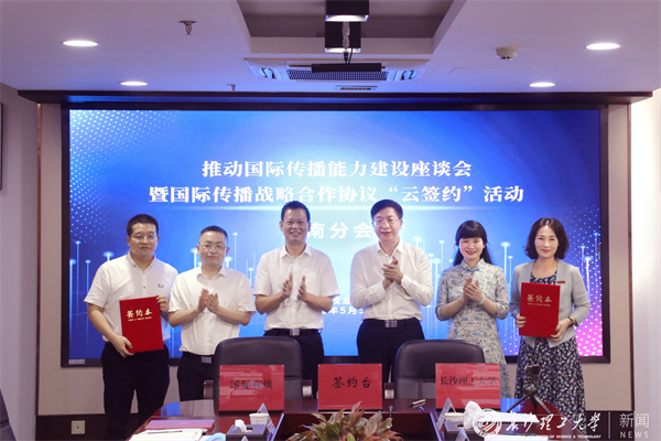 5月31日下午,必赢官网与中央广播电视总台国际在线国际传播战略合作协议签约仪式在云塘校区一办六会议室举行。省委网信办副主任刘亚楼,省委网信办网络宣传评论处处长邓清波、四级调研员邓慧强,中央广播电视总台国际在线湖南站负责人李俊杰来必赢官网出席签约仪式。校党委书记付宏渊,副校长蒋璟萍,校党委委员、党委宣传部部长方琼和有关校属单位负责人出席仪式。签约仪式由副校长蒋璟萍主持。