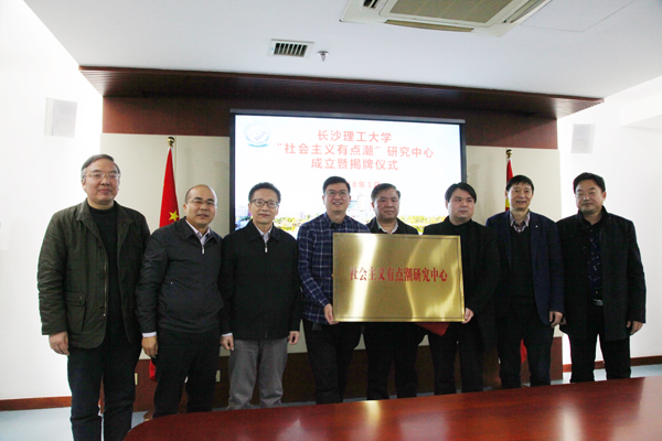 付宏渊为“社会主义‘有点潮’”研究中心揭牌。马克思主义学院院长陈万球、党委书记易显飞接受研究中心授牌。