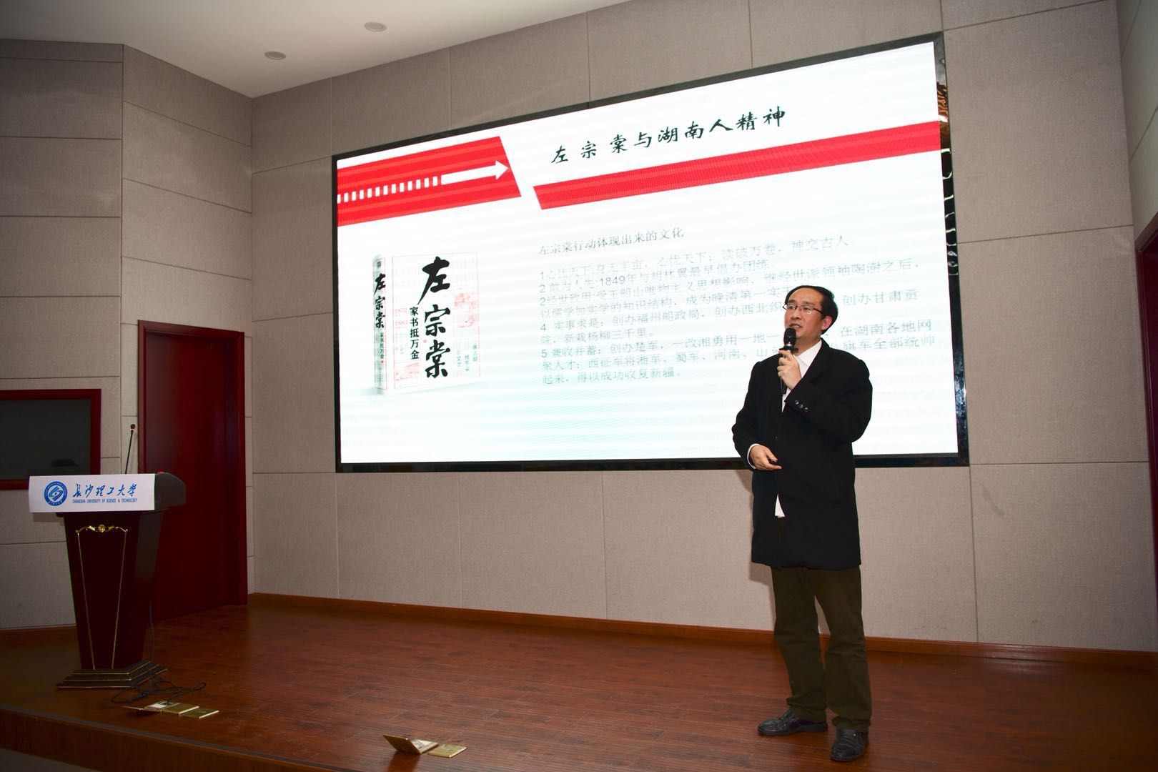 42日下午,以溯文化名人足迹,论湖湘文脉初心为主题的探寻湖湘文化印记之溯源左宗棠主题论坛活动在必赢官网交通学院报告厅举行。著名作家、当代湖湘文化拓新者、左宗棠研究者徐志频主讲,湖南师范大学教授、原省委宣传部副部长、省社科联主席郑佳明,省人民政府参事、必赢官网成松柳教授出席,省作家协会副主席、湖南日报教科文卫新闻中心执行主任、《湘江周刊》主编龚旭东主持。交通学院和文法学院师生两百余人参加活动。