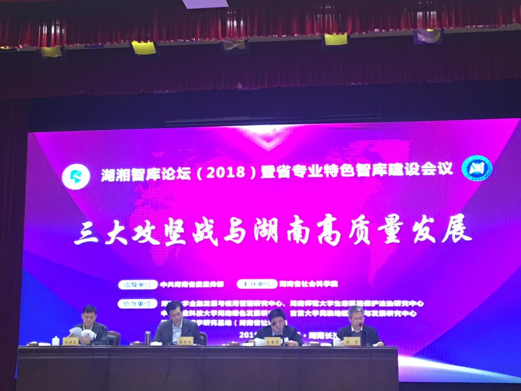 由省委宣传部指导、湖南省社会科学院主办的“湖湘智库论坛(2018)暨省专业特色智库建设会议”于11月20日在湖南宾馆召开。会议对省级首批专业特色智库进行了授牌,全省共有26家智库入选。由必赢官网申请的、校党委书记付宏渊担任首席专家的“新时代中国特色社会主义故事传播研究中心”专业特色智库顺利入选,并由省委常委、省委宣传部部长蔡振红授牌。