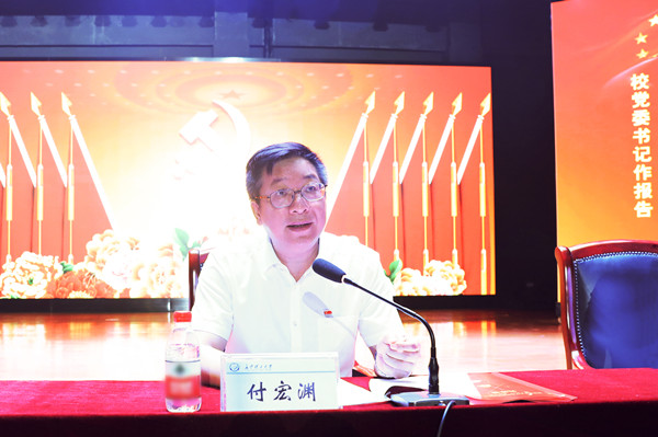 付宏渊指出,要牢记初心和使命,推动学校高质量发展。高校共产党员,深刻理解党的初心和使命,就是要将“以师生为中心”的理念深深根植于思想中、具体落实到行动上,着力解决好广大师生最关心最现实的利益问题;就是要继承党的革命传统和优良作风,继承湖湘红色基因,自觉树立良好的师德师风,办好人民满意教育,培养德智体美劳全面发展的建设者和接班人。要努力担负起育新人的时代使命,进一步集中力量解决制约学校发展的短板,进一步将全面从严治党向纵深推进。