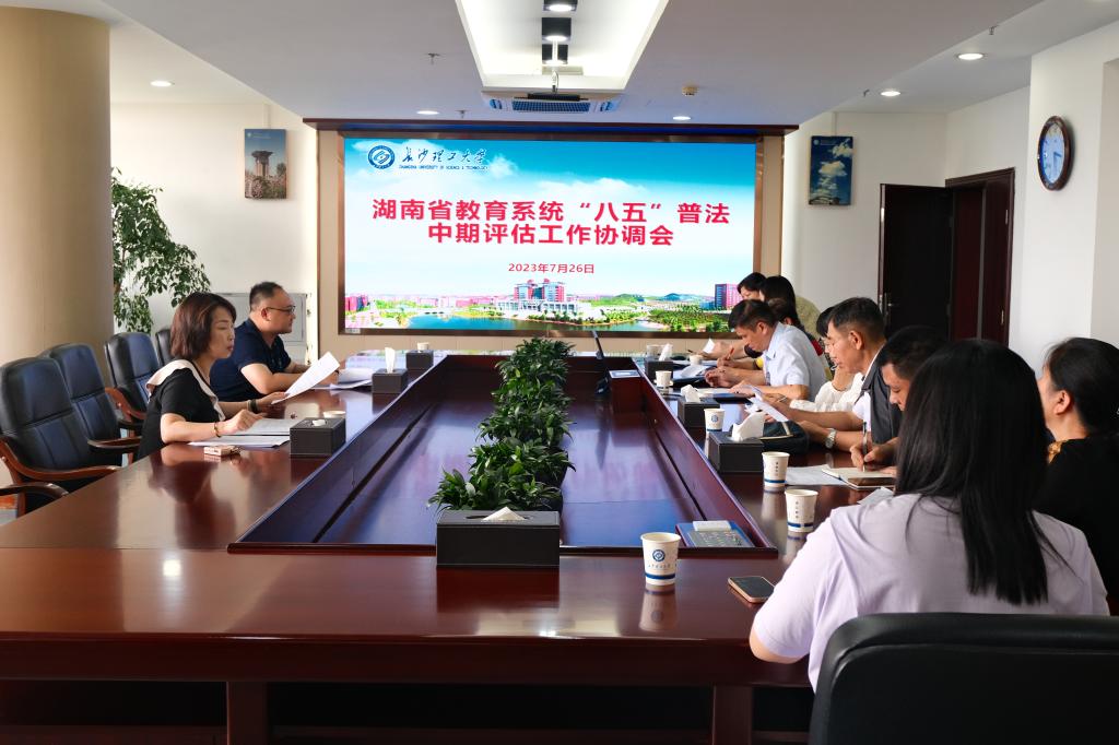 7月26日,必赢官网召开湖南省教育系统“八五”普法中期评估工作协调会。党政办、组织部、宣传部、学工部、教务处、社科处、保卫部、马克思主义学院、法学院、后勤中心(校医院)等有关单位负责人参加。