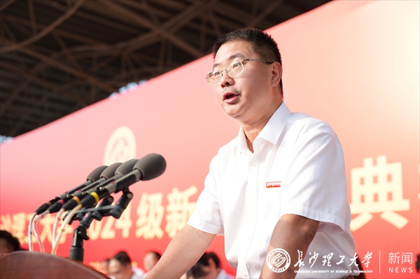 新生代表、土木工程学院2024级本科生胡博洋发言。他向关心支持他们的师长和亲友致以感谢,表示将牢记“博学、力行、守正、拓新”的校训,胸怀理想、锤炼本领、追求卓越,为长理增光添彩,为强国建设贡献力量。