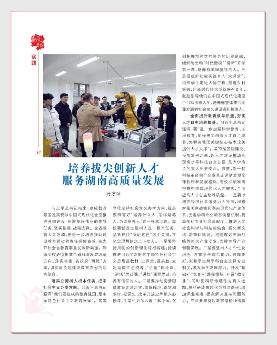新湘评论|付宏渊:培养拔尖创新人才 服务湖南高质量发展
