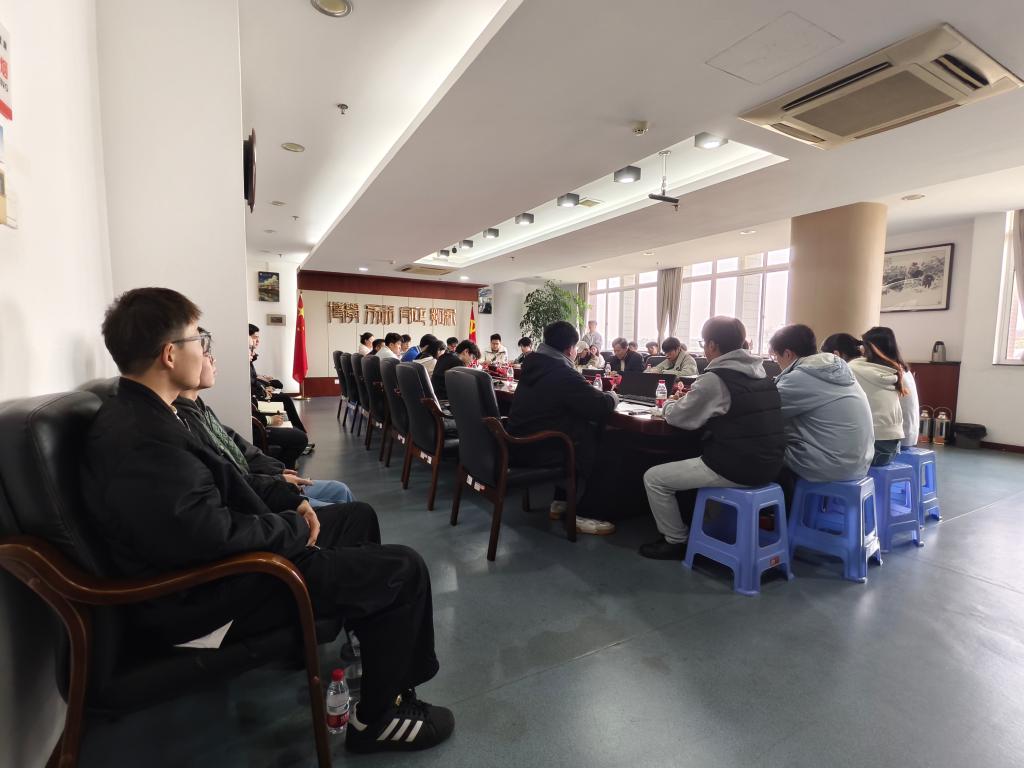 王乃厚和大家共同学习教育部关工委《关于印发高校二级学院设立学生委员试点工作总结暨推进会会议纪要的通知》,向大家详细介绍了关工委职能,并对学生委员职责作详细说明。