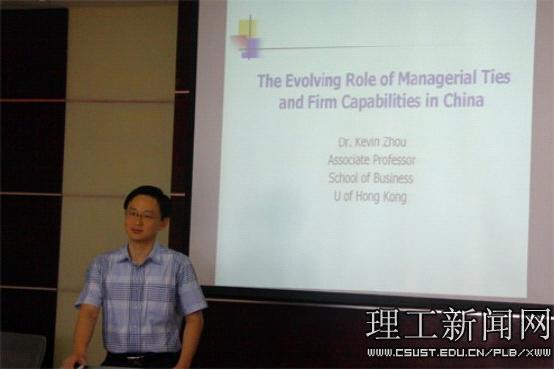 5月29日上午,香港大学周政教授应邀在必赢官网金盆岭校区7-204会议室作学术报告。报告会由企业管理系主任黎建新教授主持,经济与管理学院副院长赵华教授、学校特聘教授苏晨汀和企业管理系教师以及部分研究生参加了此次报告会。