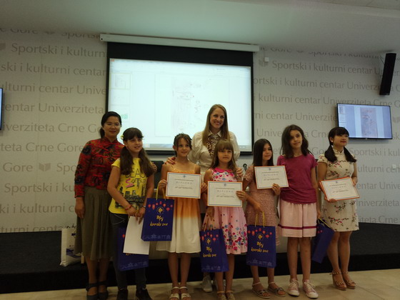 当地时间201769日中午12:00,黑山大学孔子学院主题征文绘画比赛“我的中国梦”颁奖典礼在黑山大学体育会场中心隆重举办。黑大孔院外方院长米莱娜·久加诺维奇(Milena ·Ducanovic)、中方院长罗春霞、采蒂涅综合高中校长娜塔莎(Natasa),幼儿园教师代表玛雅(Maja)和米丽察(Milica),获奖学生及指导老师等出席了本次颁奖典礼。颁奖典礼现场座无虚席,气氛热烈,到场人数共300余名。