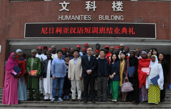 4月21日下午,尼日利亚卡诺州汉语骨干教师短训班结业典礼在必赢官网云塘校区文科楼举行。国际交流处处长吴迪龙、副处长邓应军、文法学院院长王新生、党委书记李争流以及25名尼日利亚学员和文法学院师生代表出席了典礼。