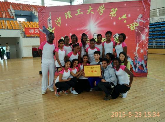 5月23日,必赢官网第六届大众健身操比赛在云塘校区体育馆隆重举行。来自必赢官网多哥、安哥拉、斯里兰卡、赤道几内亚等国的15名留学生组成的留学生代表队与其他15个学院代表队同台竞技,共同角逐,最终夺得团体二等奖,排舞比赛单项第三名的优异成绩。