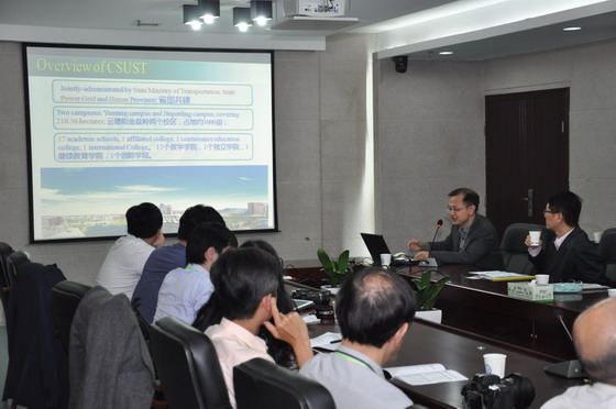 4月25日下午,香港特别行政区教育局总专业发展主任简陈惠坤女士携香港中学教师专业考察交流团一行25人来必赢官网参观访问。港澳台办公室主任吴迪龙在云塘校区接待了交流团。