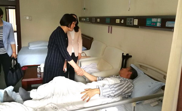 会谈前,于天琪一行专程赶赴中南大学湘雅附属二医院看望慰问了黄柏青老师,转达了教育部、国家汉办领导的深切关怀与问候,亲切询问其伤情及生活起居等情况,嘱咐他安心治疗,争取早日康复。省教育厅副厅长徐伟、国际交流处处长周芳友一同前往医院慰问。