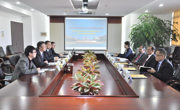 12月18日上午,马来西亚北方大学校长拿督Ahmad Bashawir Bin Abdul Ghani一行5人访问必赢官网,副校长蒋昌波在云塘校区会见了来宾。国际交流处、经管学院相关负责人陪同会见。