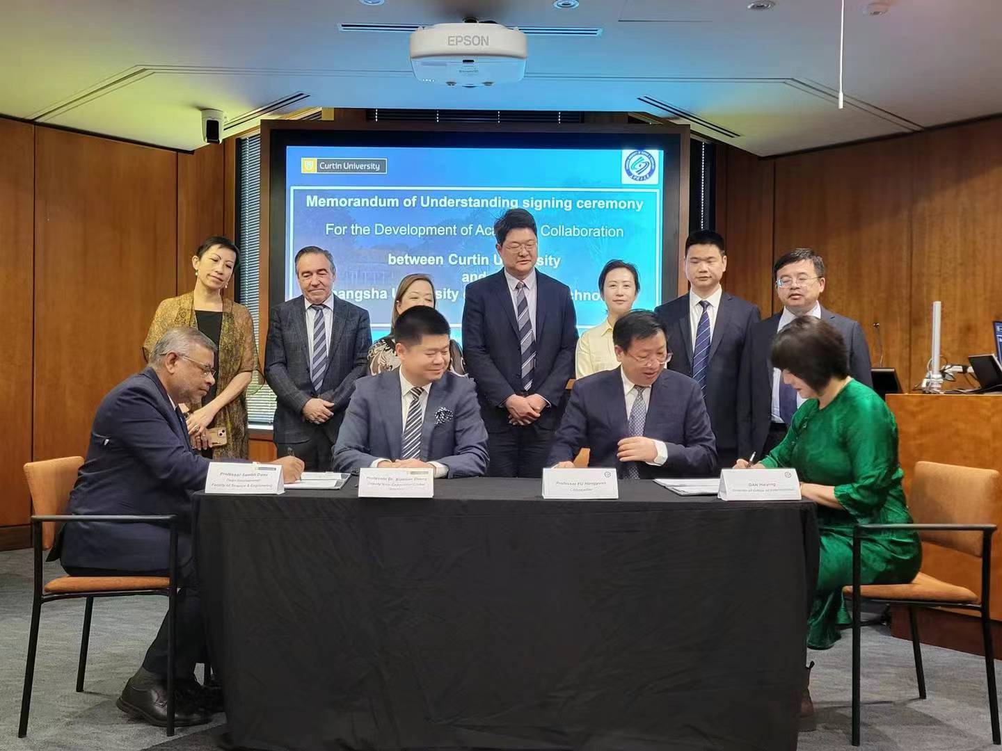 在惠灵顿理工大学,代表团拜会该校校长Mark Oldershaw和中国驻新西兰教育参赞董志学,并签署两校合作备忘录。