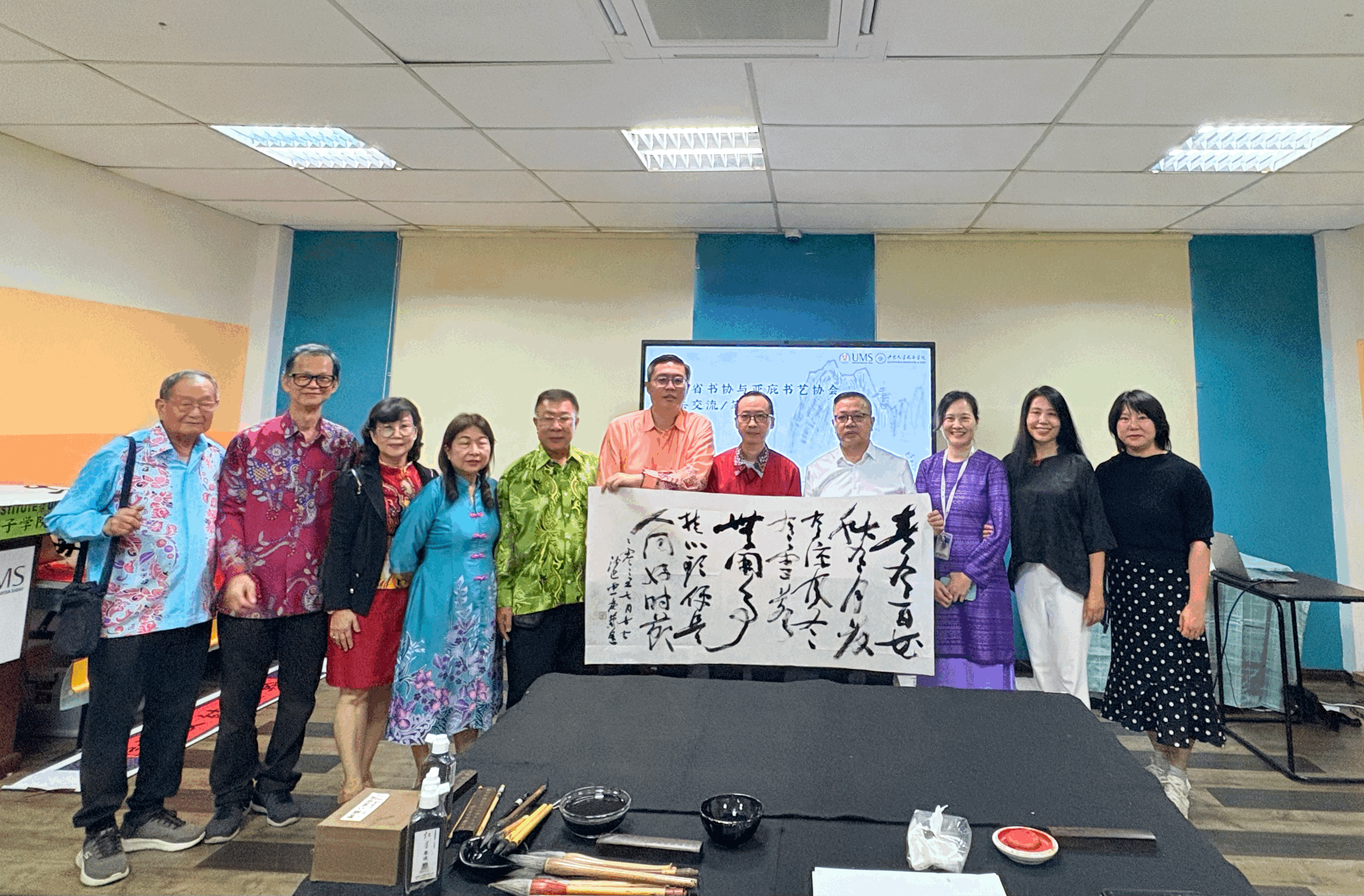 本次文化交流活动由湖南省文联牵头组织此次文化艺术交流团出访。必赢官网对外合作与交流处充分发挥桥梁纽带作用,积极协调对接沙巴大学孔子学院,以及沙巴亚庇书艺协会,共同策划、组织了系列内容丰富、形式多样的文化交流项目。