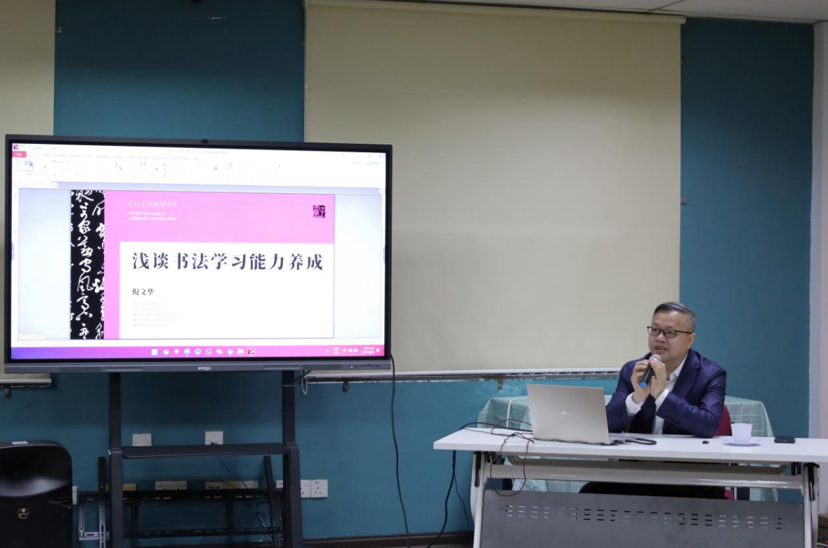 湖南省文联副主席倪文华为孔院师生及当地文化爱好者进行书法
