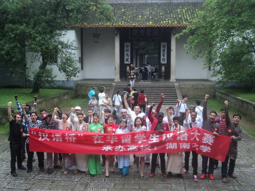 2012年5月12日上午,CCTV第五届“汉语桥”在华留学生汉语大赛在湖南大学举行,来自中南大学、湖南大学、湖南师范大学、湘潭大学、437必赢会员中心等高校的25名留学生参加了此次比赛。此次比赛由中央电视台、国家汉办/孔子学院总部联合主办,全国百余所知名大学的留学生参加了各赛区的选拔赛。