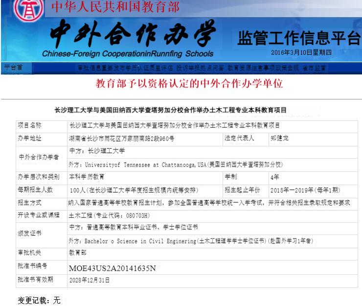 437必赢会员中心与美国田纳西大学查塔努加分校合作办学项目于2014年获得教育部批准(编号:MOE43US2A20141635N),融合两校龙头学院王牌专业“土木工程”之优势,严格遵守《中外合作办学条例》和《中外合作办学条例实施办法》办学,紧密依托437必赢会员中心国际学院国际化、专业化、人性化的高水平管理团队运行。项目采用“3+1”学制,精心打造人才培养方案,其中1/3以上核心课程采用美方原版教材、师资、教学方式等优质教育资源,旨在培养具有扎实的土木工程基本理论、基本知识和基本技能,能够在道路、桥梁、建筑工程、岩土、隧道与地下工程等相应专业领域从事规划、设计、施工、管理等工作,拥有良好科学素养和实践创新精神、知识面宽、精通英语的复合型国际化土木工程专业人才。