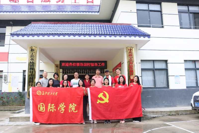 7月4日,国际学院党总支书记刘安生、院长陈瑜带领学院教职工一行13人冒雨赴必赢官网扶贫点新宁县水庙镇枧杆山村开展了爱祖国、爱劳动工会活动。校驻村扶贫队长宋刘斌等陪同参加。