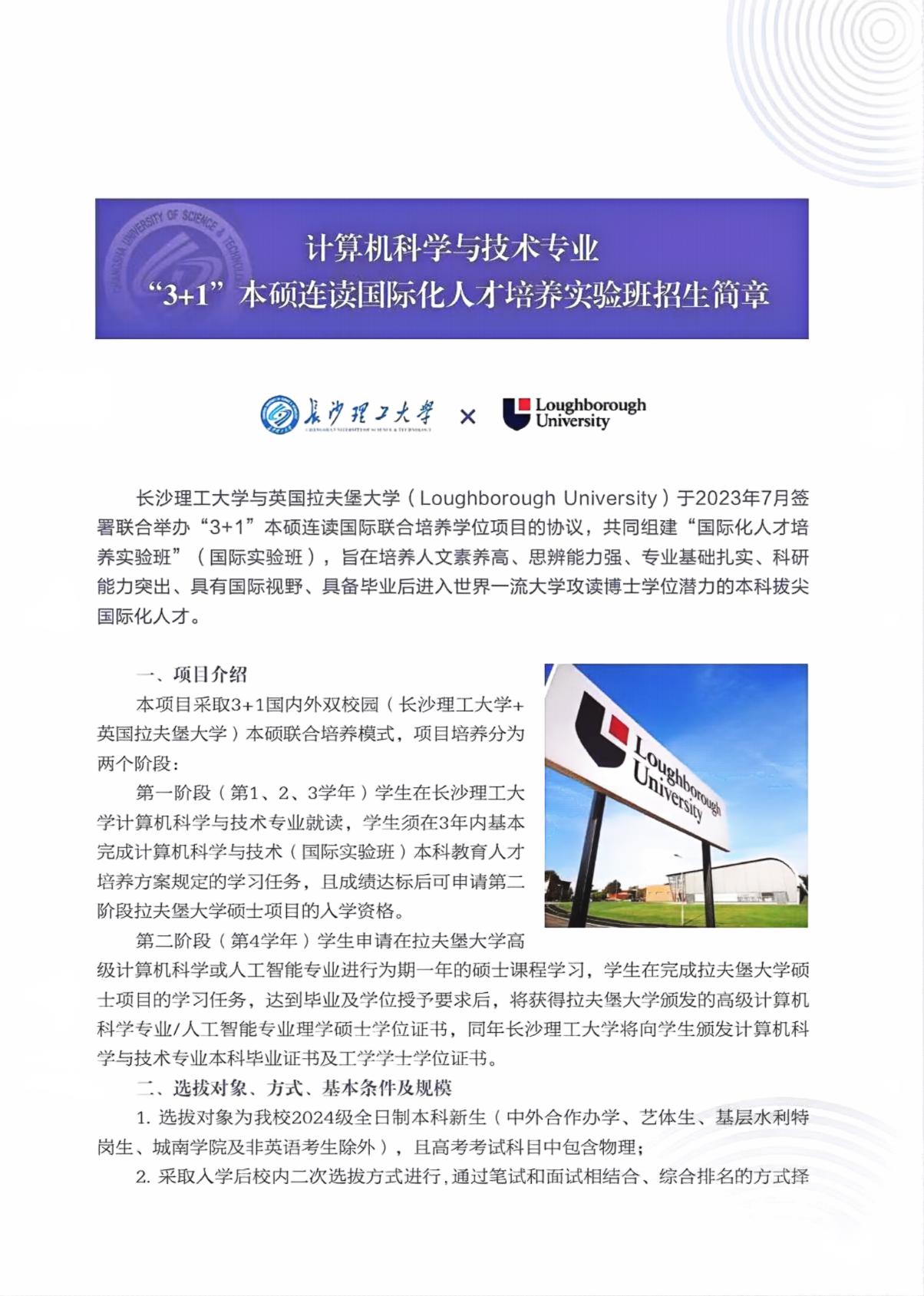 437必赢会员中心计算机科学与技术专业“3+1”本硕连读国际实验班招生简章