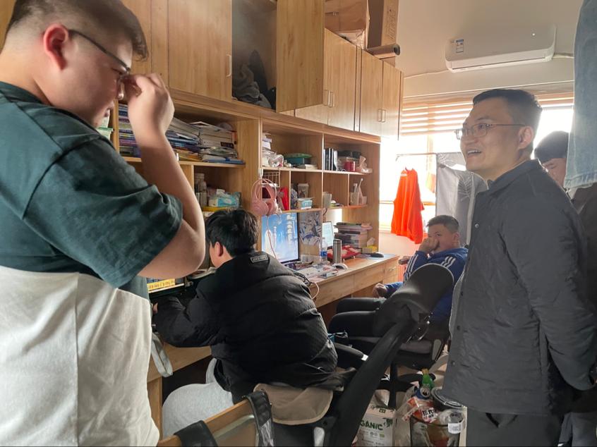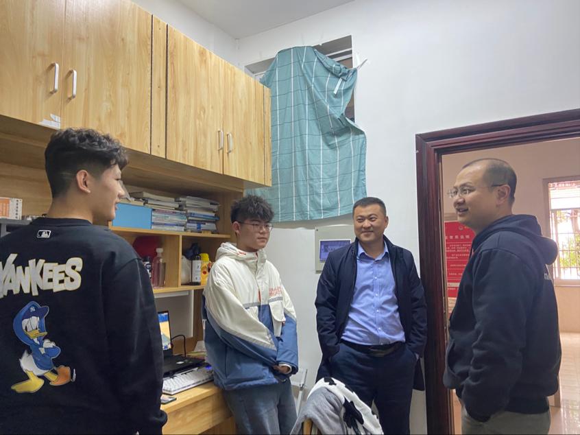 新学期伊始,为更好地了解学生学习生活情况,2月21日下午,国际工学院党总支书记王学成、院长吴迪龙、副书记兼副院长乔法光,以及学工办、留工办全体辅导员深入学生宿舍,看望返校学生。