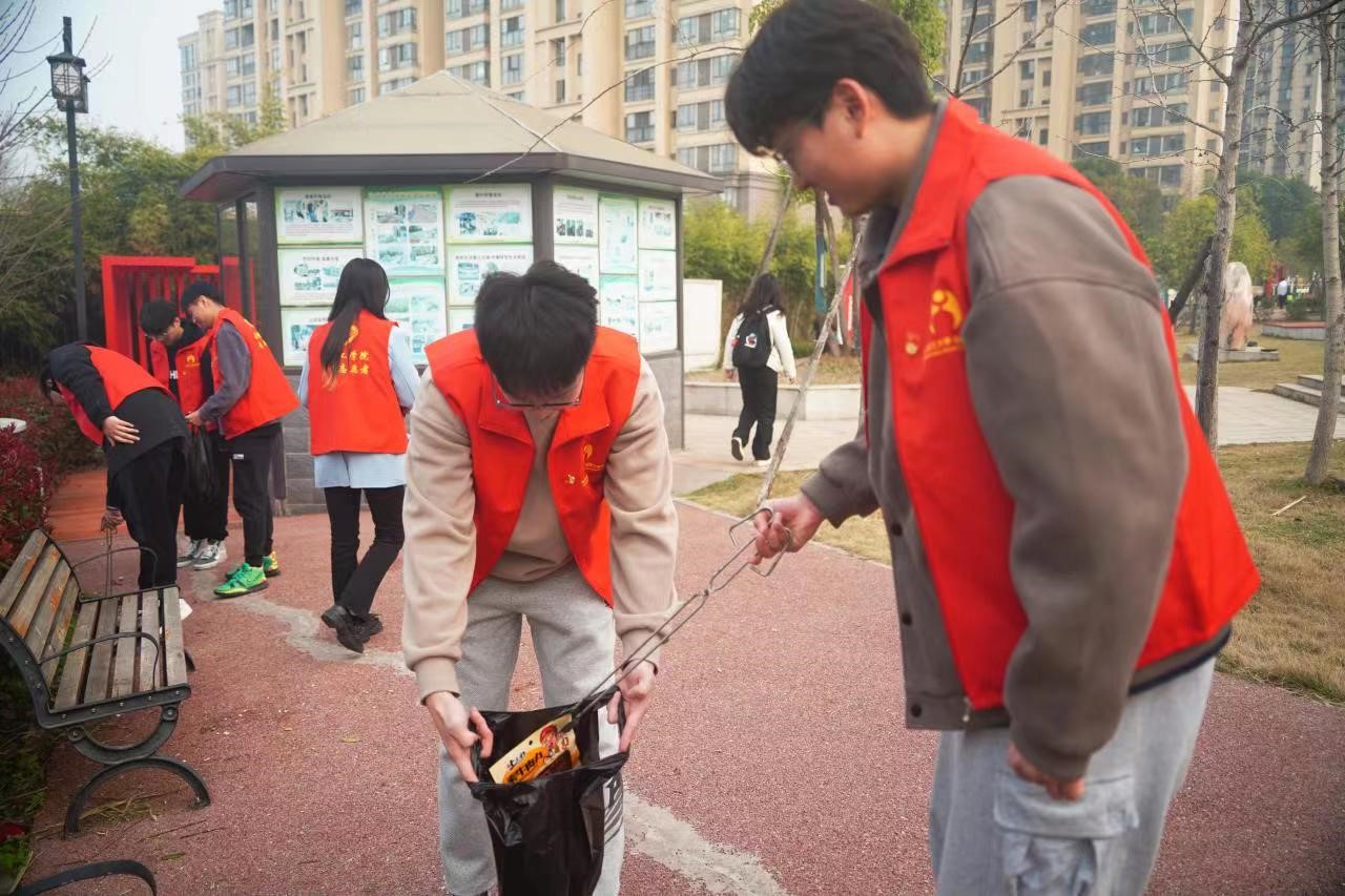宣讲会后,中外青年学生和社区工作人员一起来到卢浮社区西侧公园,共同开展学雷锋志愿服务。大家身着红马甲,手拎垃圾袋,拿着扫帚、垃圾钳等工具,捡拾烟头、白色垃圾等绿化带里的“隐藏垃圾”,还公园一份干净整洁,引来社区居民的大力赞扬。。