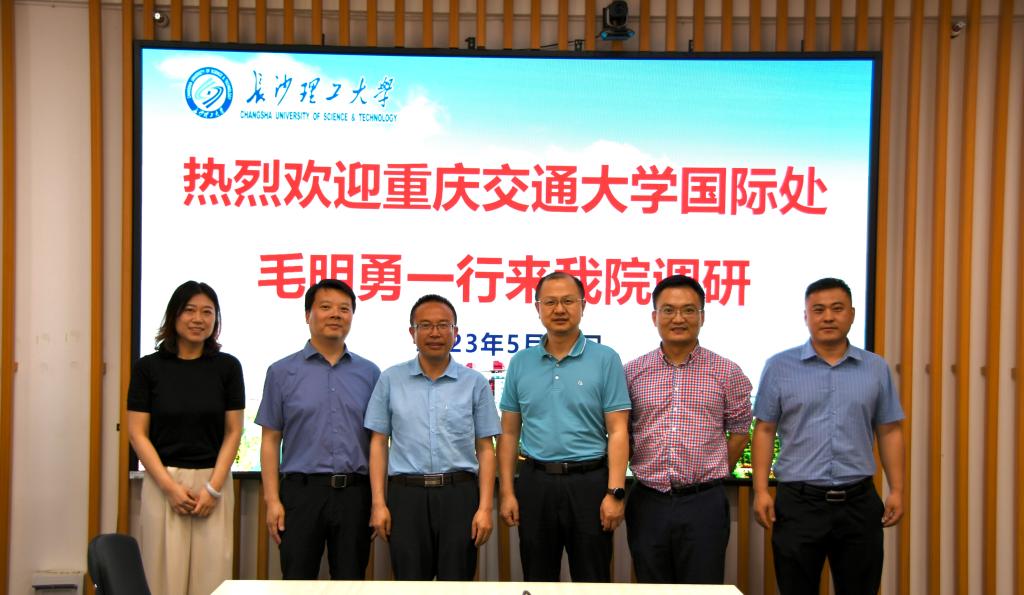 5月18日下午,重庆交通大学国际合作与交流处处长毛明勇、副处长徐厚智等一行来我院调研。党总支书记王学成、院长吴迪龙、党总支副书记乔法光及相关科室负责人参加座谈。
